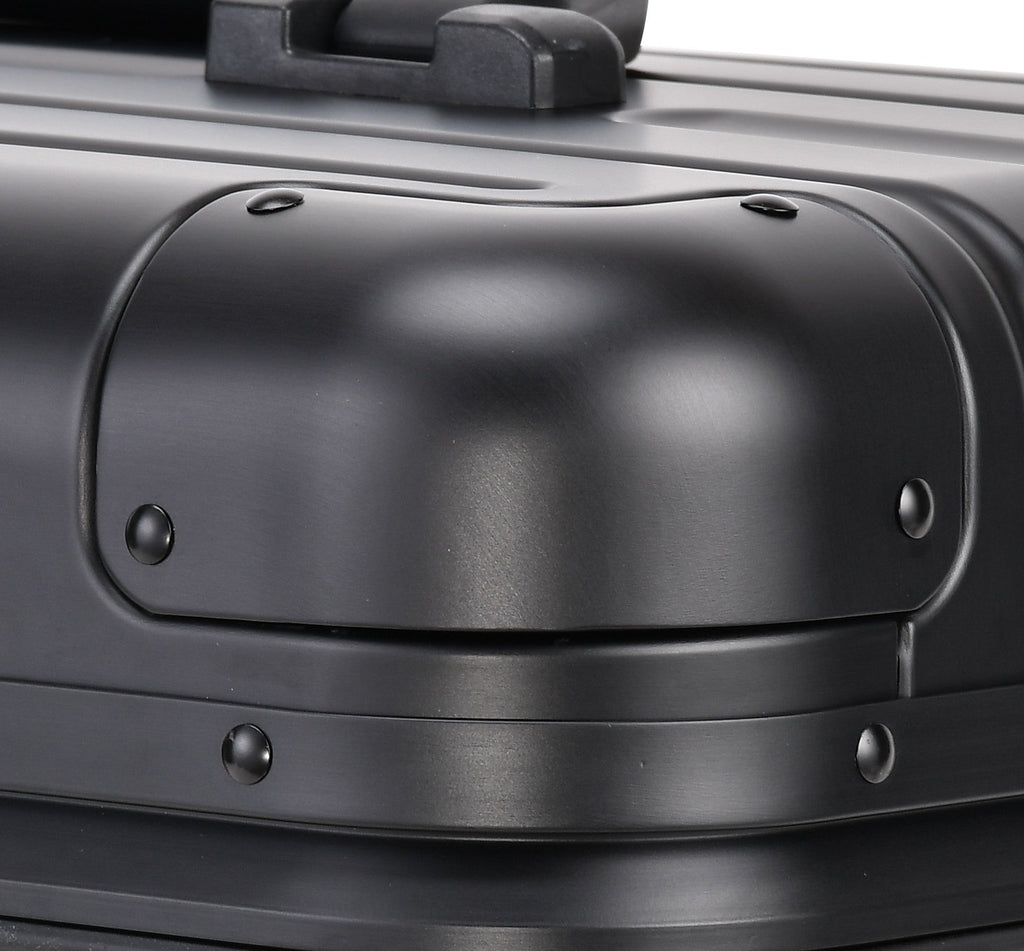 Handle caps, corner protectors, rubber studs, bumpers and other parts are attached to the suitcase using screws or can be just pressed into position.