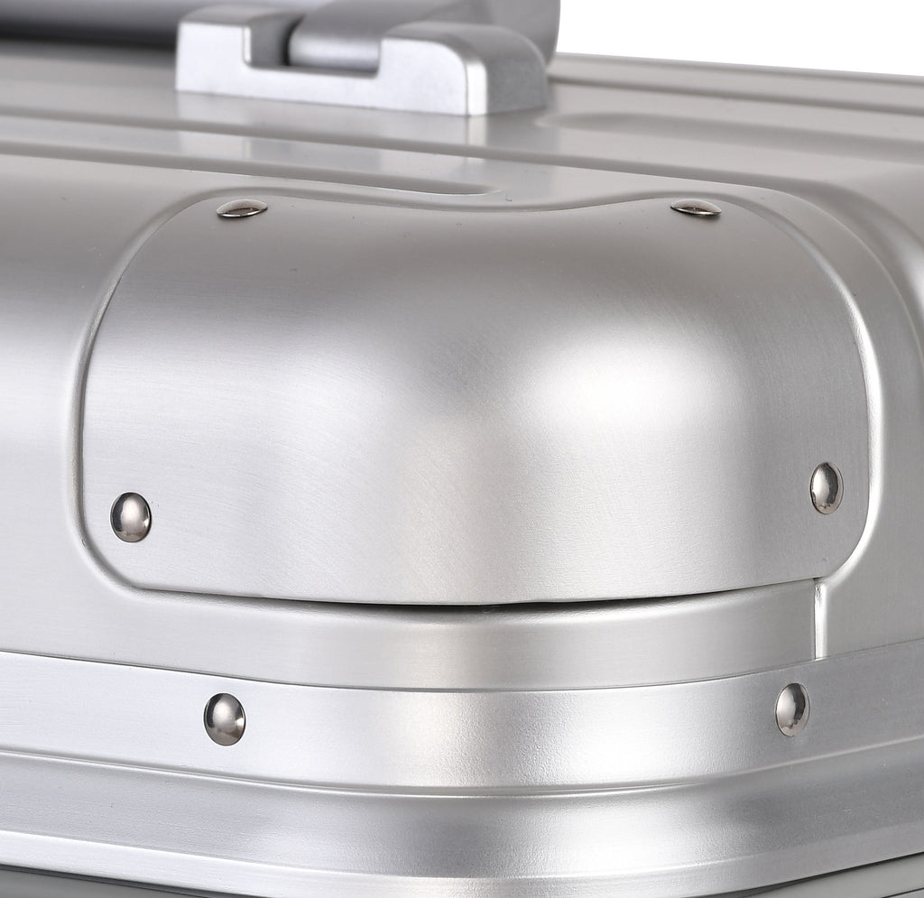 Handle caps, corner protectors, rubber studs, bumpers and other parts are attached to the suitcase using screws or can be just pressed into position.