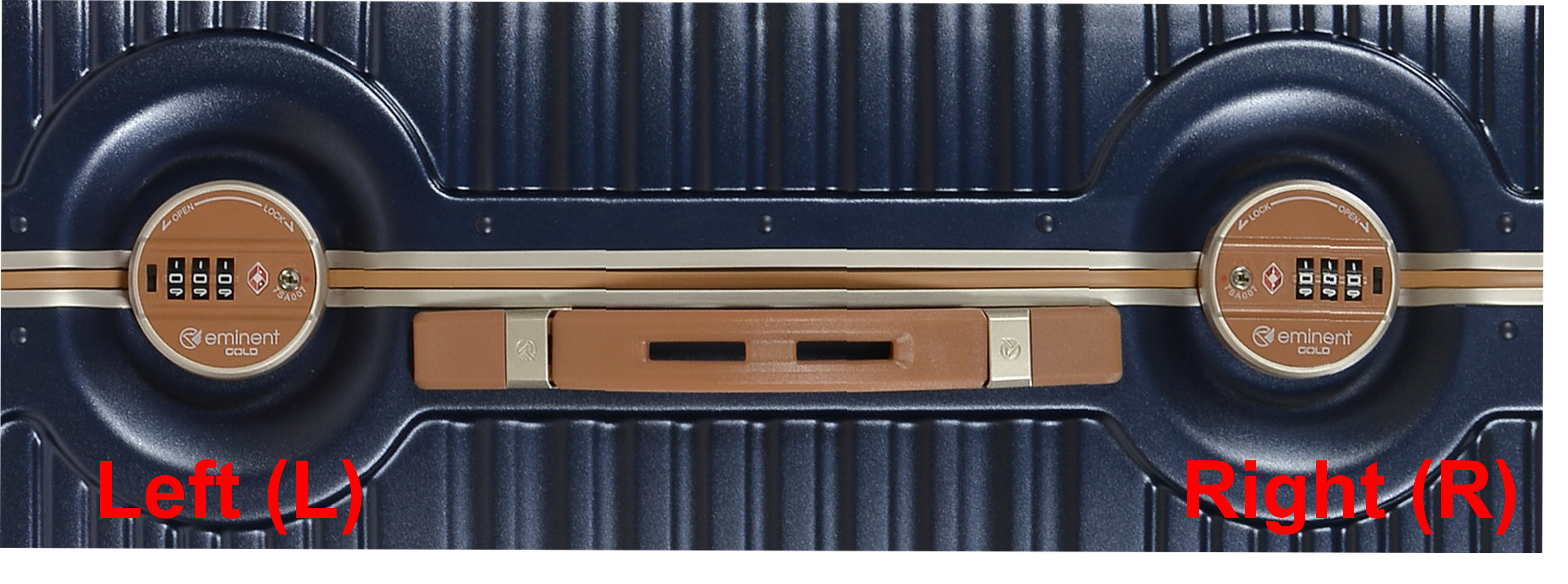 Możesz zidentyfikować, który zamek potrzebujesz, umieszczając walizkę przed sobą tak, aby logo na każdym zamku było skierowane do góry i porównując je z obrazem referencyjnym.
